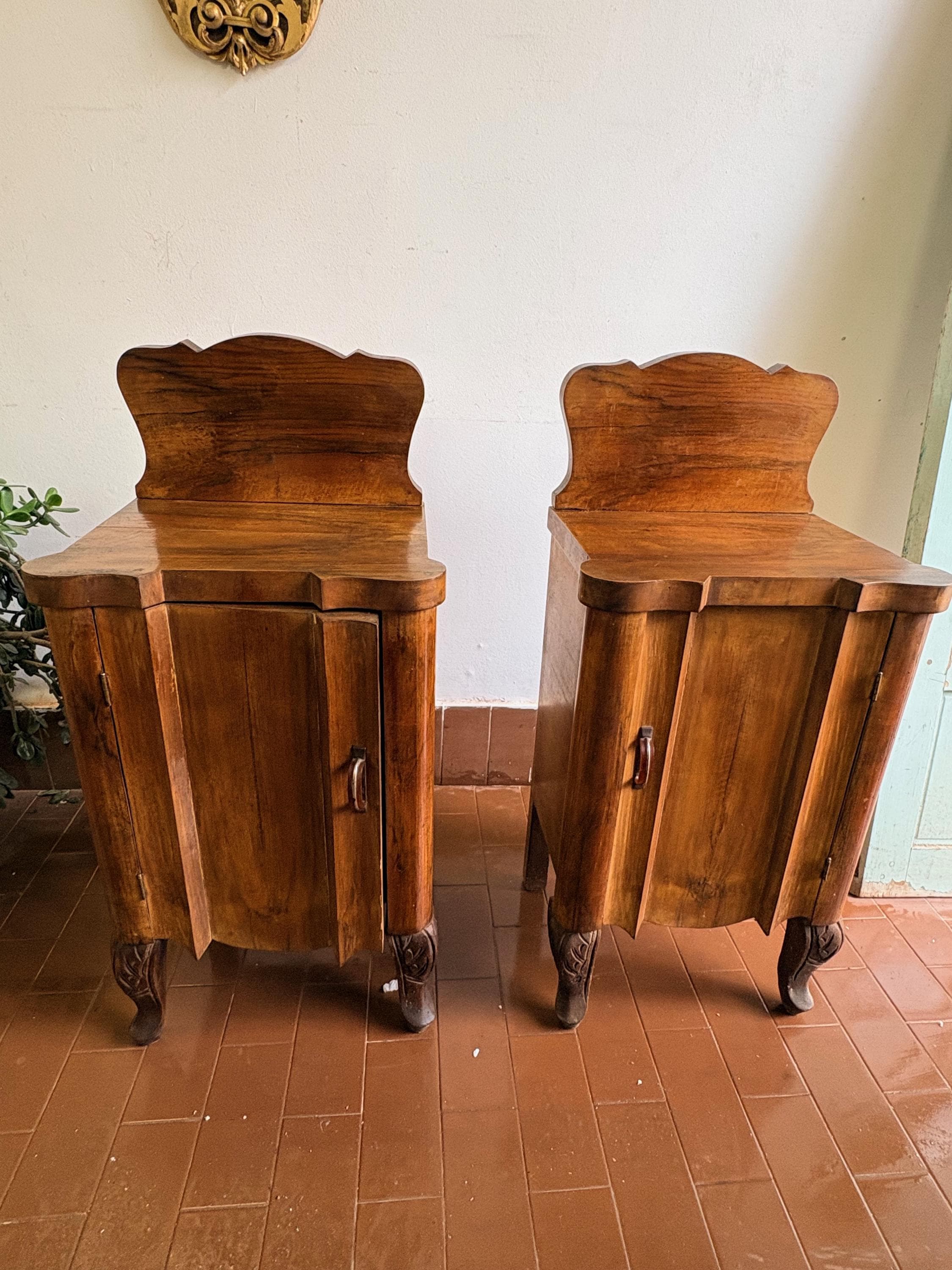 Pair of softwood bedside tables, Italian artisan production from the 1940s.