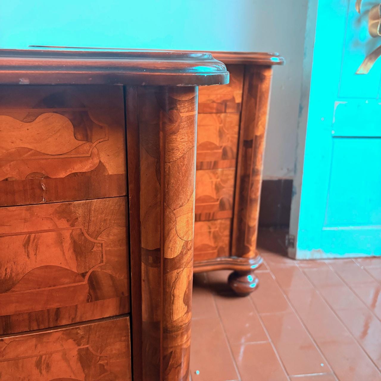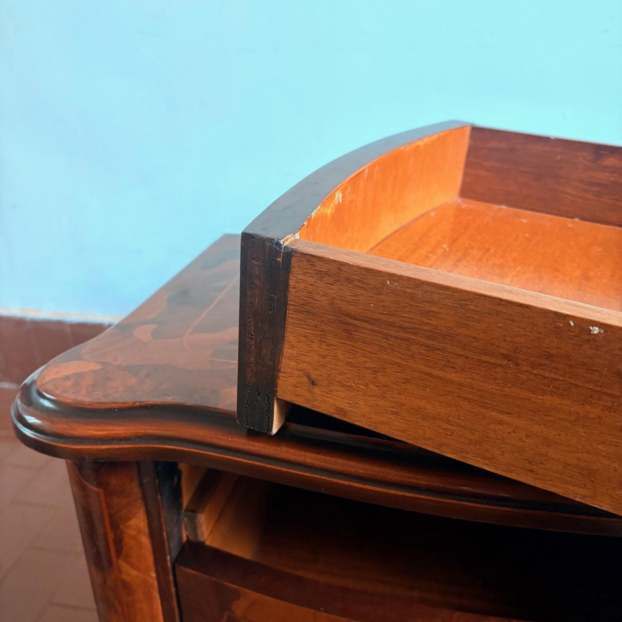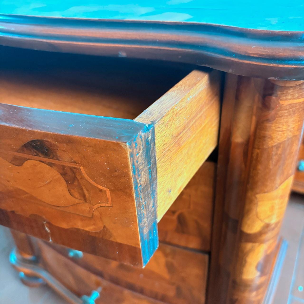The sides feature typical period craftsmanship, with wave details. Drawers with handcrafted dovetail joints.
