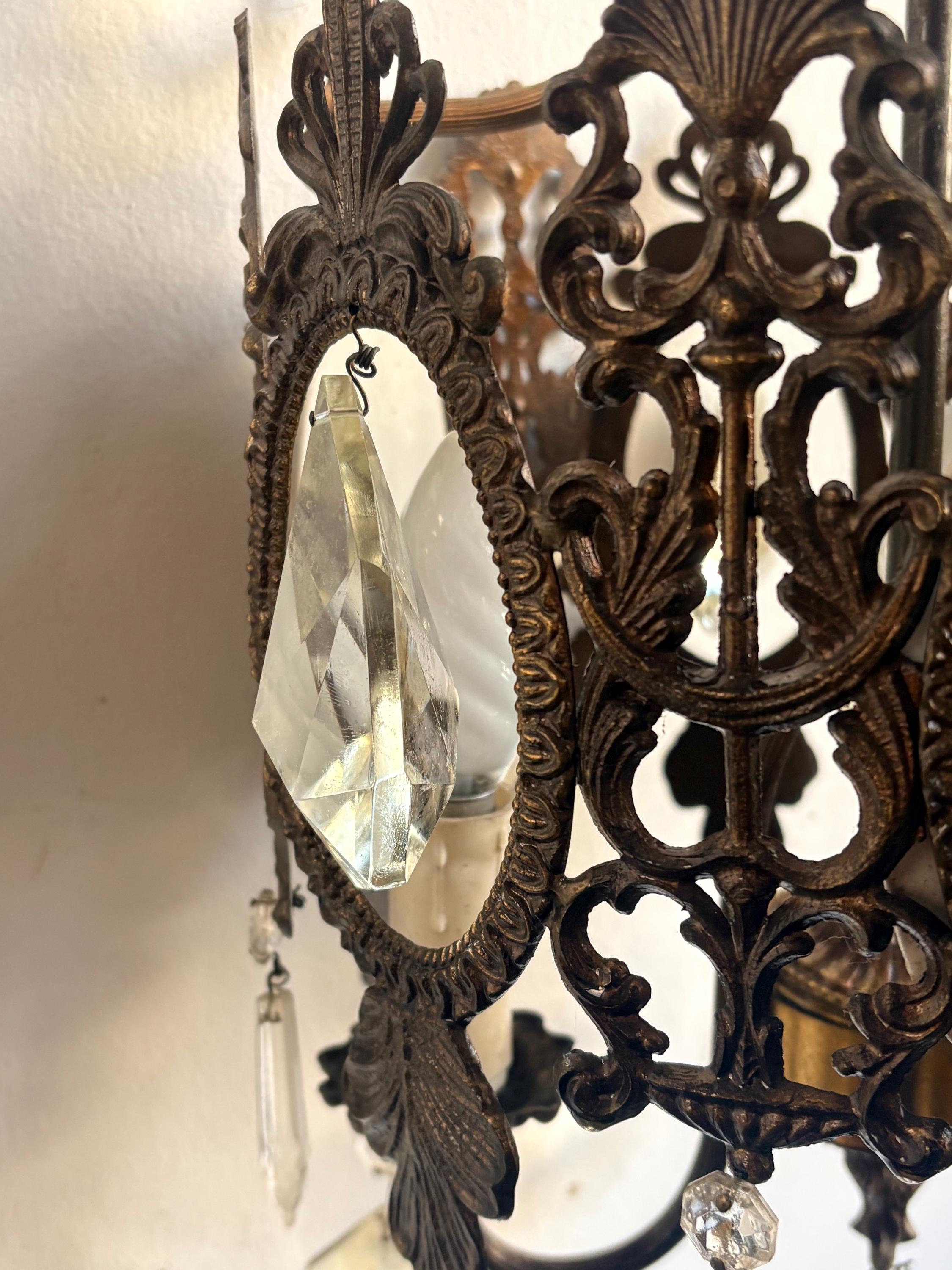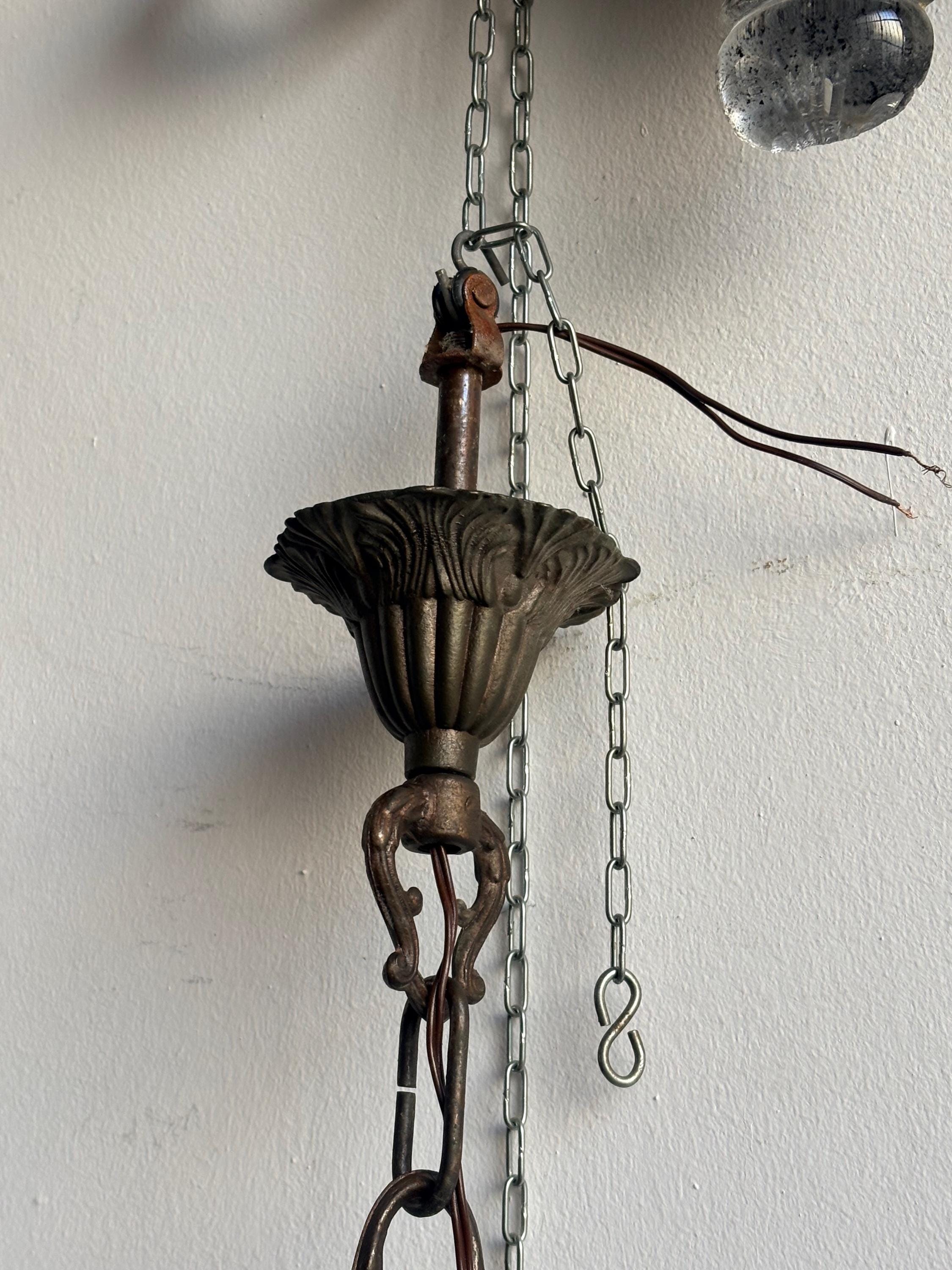Three-light chandelier, in excellent condition with no breakages and all crystals intact.